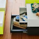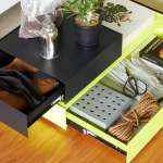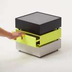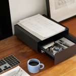 スムーズな引き出しの開閉と、どこにでも置けるシンプルなデザインが魅力の「KaKuKo」。カラーは、マット仕上げのブラックとグレー、艶のあるネオンイエローが用意されています。