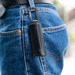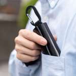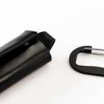 付属のカラビナ(長さ52mm)は着脱式となっており、財布本体から取り外せる仕様。カラビナを取り付ける部分は皮革素材の表革を両面に貼り合わせて強度を上げており、ベルトループやバッグに安心して取り付けられます。もちろん、財布本体をバッグやポケットなどに入れてもOK。超小型なので、ポケットに入れても気になりません。
