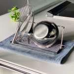 近年、水切りかごを置かずに、吸水タオルの上に洗った食器を置いてすぐに片づけるスタイルが普及してきているのだとか。でも、吸水タオルだけでは食器が立たないほか、ボトルも立てにくく、少し使いにくそう。そんな悩みを解決するのが「すっきり暮らす ジャグボトルスタンド」です。