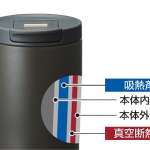 真空2重構造の内側に吸熱剤を仕込み、ステンレス3層構造に。この吸熱材のおかげで、95℃の飲み物を入れて3分後には約70℃に下がります。そんな猫舌の人にも飲み頃になった温度を、長時間キープしてくれる構造です。