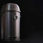 サイズは直径24cm(内寸)×高さ48cm。食材をフックに吊るせる中板と、ナッツなどの細かい食材を燻製にするザルが付いています。ドーム型の中板を本体の底に設置したことで、温度が上がりすぎず、均一に熱が分布。さらに上蓋もドーム型にして熱循環効率を高め、庫内の温度を均一にできるようなっています。