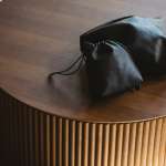 ストリングコードには、クロム鞣しを施した牛革を四つ編みにした紐を採用。本体もコードもブラック一色で構成されたシンプルでモードなデザインです。 素朴なイメージの“巾着袋”が、上質な本革によってクラス感あふれるアイテムに仕上げられています。