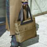 「トートバッグ(ナイロンツイル)」には、メイン素材にほどよい光沢のあるリサイクルナイロンツイル100%を採用。撥水加工も施し、水濡れに強い仕様です。