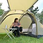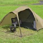 本体サイズは幅220×奥行き260×高さ143cmで、インナーテントの設置面サイズは120×210cm。幕体は耐久性に優れたリップストップナイロン20Dで、PUコーティングにより耐水圧3000mmの防水性を装備。インナーテントはポリエステル 68Dで、ボトム部分にはフライシートと同じくPUコーティングによる耐水圧3000mmの防水性を備えます。ポールは軽く強度に優れたA7001アルミ合金を採用。ポールやインナーテントを含めた全体の重量は3.6kgで、収納時はφ18×44cmまで小さくなるのも魅力のひとつ。