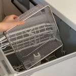 オールステンレス製なので、食洗機で丸洗いも可能。水切りかごは、いつのまにか付くぬめりなども悩みの種ですが、これならいつでも清潔な状態をキープできます。
