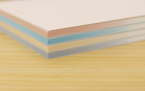 「365notebook」シリーズ共通の特徴である純白紙を用いた便箋は、罫線のない無地タイプで、季節の色が淡いグラデーションで入っています。
