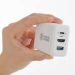 この11月末より登場の「HWUA-P65CH」は、PCやスマホ、ゲーム機などをUSB-Cポートを介して充電しながら、ディスプレイやプリンターなどの外部機器に機能を拡張できるマルチなACアダプター。