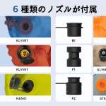 6種類のポンプ用ノズルが付属し、メジャーなエアマットのメーカーと製品(KLYMIT、NEMO、BIG AGNES、TWINLOCK、WINGLOCK、STS、EXPED、FLEXTAIL自社製エアマット)に対応。操作方法は電源スイッチをダブルクリックするだけと非常に簡単で、ポンプを持たずにハンズフリーで膨らむのを待つだけでOK。