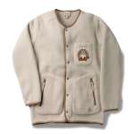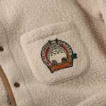 「となりのトトロフリースブルゾン」(1万9800円)も、胸元に配したワッペンがポイント。両腰のポケット⼝ファスナーのスライダーにも、コラボデザインの⽜ヌメ⾰引き⼿を採用しています。