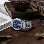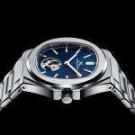 一方外装に関してはクォーツモデルと同じく、ケースからブレスレットまでトータルで設計されたブレス一体型を採用。ベゼル正面のフラットな部分は縦方向のヘアライン加工、側面の立ち上がり部分はポリッシュ仕上げと表面処理を使い分けることで、奥行きを強調した上質な仕上がりになっています。