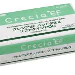 「クレシアEF ハンドタオル ソフトタイプ」は、2枚重ねでやわらかく、吸収量と吸収スピードを兼ね備えたペーパーハンドタオル。素材にはパルプとリサイクルパルプをミックスし、環境に配慮しています。