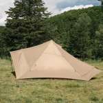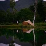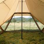 この「kohaku」、ひと言でざっくりいえば変形八角形のワンポールテント。テント外周をペグ打ちして1本のポールで立ち上げるシンプルなスタイルですが、その立ち姿は実に優雅でアーティスティックです。