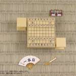 将棋盤は足付きタイプの本格的なものを再現しており、クチナシの装飾が施された特徴的な形状となっています。扇子は開いた状態と閉じた状態の2タイプを用意。