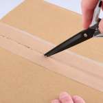 通常、ハサミでダンボールを開けようとすると、ハサミを開いた状態で使用することになるため危険ですが、「SEKI-TEX」ならハサミを閉じた状態で利用できるため安全です。