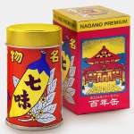 長野県産100%にこだわり、辛味の元となる唐辛子、辛味と香りを併せ持つ生姜、そして風味と香りの山椒、柚子、紫蘇、黒胡麻、えごまを原料に用いています。内容量は14gで、缶のデザインと同様の小箱に入れられます。