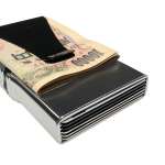 また、マネークリップが付いているため、三つ折り状態にした紙幣を1~15枚まで安定して保持しておくことが可能。