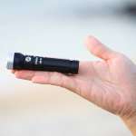 サイズは長さ102×テール幅20×ヘッド幅21.5mmとコンパクトでペンよりも小さく、指2本でつまめるほど。重量も約54g(内蔵バッテリー含まない)と軽く、胸ポケットに収まります。