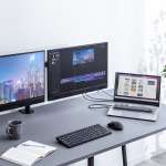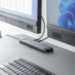 本体サイズは約W27.1×D4.5×H1.7cmとコンパクトで重量は約240gと軽く、持ち運びも簡単。本体側面には付属のType-Cケーブルを固定できるスリットが付いており、ケーブルをなくす心配もありません。2画面に対応可能で、場所も取らない高性能ドッキングステーションで、仕事を効率化しましょう!