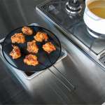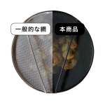しかもこの油はねガード、ネット部分がフッ素加工を施した黒メッシュになっているのが特徴。一般的な網は銀色メッシュのものが多く、光に反射して調理具合が見にくいのが難点でしたが、黒メッシュは反射しにくい上に、調理中も食材の様子を確認しできるのが使いやすさのポイントです。