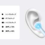 各種操作はイヤホン本体に指先で触るだけで行えるタッチコントロールを採用し、スマホ等へは一度ペアリングをすれば充電ケースを開ける度に自動で接続。無料アプリ・HeyMelodyを介して、タッチコントロールの設定やバッテリー残量の確認、サウンドカスタムなどが行えます。また本体に極小サイズのマイクを内蔵しており、周囲の雑音をフィルタリングする通話時AIノイズキャンセリング機能で相手への音声だけでなく、相手からの音声もクリアに。イヤホン本体はIPX4の防水性能を有しており、急な雨やスポーツ時の汗などの水滴を気にせずに装着を続けられます。