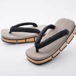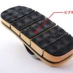 その下の土台の部分には、ヒノキの間伐材をEVAウレタンフォームとビブラムソールで挟んでいます。ヘタりにくく、フィット感もあり、下駄を履きなれていなくても快適に歩けます。