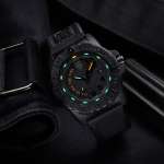 時分針のボディと秒針の先端部、インデックス、ベゼルにはブランドの特徴であるルミノックス・ライト・テクノロジーを用い、光の状態を問わず24時間・365日のフルタイムで発光することで高い視認性を確保。