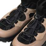 もうひとつの特徴的なディティールが、ミッドカットのアッパーの履き口。通気性のあるメッシュ素材を採用し、コードロックを搭載したリフレクターシューレースで巾着型に仕立てており、脱ぎ履きがしやすい仕様です。