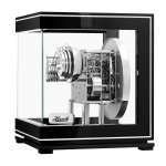 サイズは29.5×25×25cmで、ケースには透明なガラスを用いたスケルトン仕様を採用。ムーブメントの美しい輪列や動きなど、ドイツ時計伝統の緻密な技術を全方位からつぶさに眺められるようになっています。