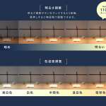 ライトの明るさは調整ボタンをタッチすると5段階で調整でき、色温度も色温度調整ボタンで昼白色、白色、中間色、温白色、電球色の5つをシーンによって使い分けが可能に。どちらもそれぞれのボタンを長押しすることで、無段階調光or調色ができます。