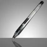 ボディのカラーリングはネイビー、グレー、ホワイト、ブラック、透明の全5種。芯径は0.5mm、替えの消しゴムはゼブラNタイプです。