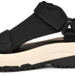 従来のハリケーンシリーズのとはアッパーにはメッシュ生地が採用されており、甲を覆うデザインでありながら通気性抜群。Unifi社製の“REPREVE”を100%使用したポリエステルウェビングのストラップも、通気性・耐久性ともに優れています。