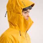 さらに、片手でフードの大きさをサッと調整できる“Storm Hood(ストームフード)”や、雨や風の侵入を防ぐふたつの“ヘムアジャスター”、素早くベンチレーション機能を発揮する脇下の“ピットジップ”など、アウトドア業界を牽引してきたアークテリクスならではのこだわりも。サステナブルなだけでなく、どんな天候、どんなフィールドでも使いやすいアイテムとなっています。