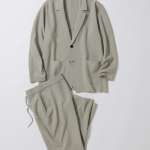 スラックスは裏地なしのノータック仕様で、ウエストシャーリング、ドローコードを搭載。高いストレッチ性と冷感ジャージー素材により、オンでもオフでもさらっと涼しく穿けるのが大きな魅力です。汗などで汚れてしまっても、手洗いと陰干しによって常にクリーンな状態で着用が可能。こちらも夏シーズンに手放せない、あると嬉しい一着となりそうです。カラーは紺、グレー、ベージュの3色となっています。