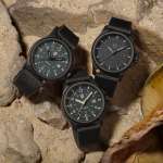 ダイヤルカラーはインデックスと文字盤を黒で統一したフルブラックアウト、サンドカラーのインデックスにダークグリーンの文字盤、サンドカラーのインデックスにブラックの文字盤を組み合わせた、全3種類のカラーバリエーションで展開。