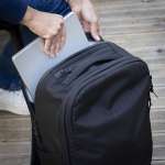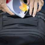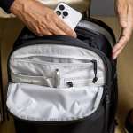 また荷室だけでなく、外装にも使いやすさを実感できる機能を各所に搭載。バッグの左サイドにボトル用ポケット、背面側に2つのポケット(うち1個はRFIDブロッキング機能付き)とキャリーケース設置用のパススルーを備え、ショルダーベルトは肩に優しいパッド入り。