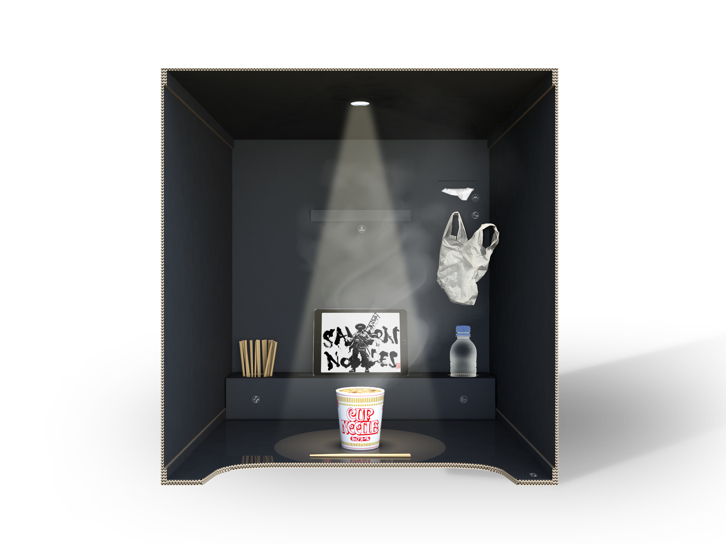 中でも気になるのが「RAMADO WORKER(ラマドワーカー)」。いつでもどこでも、これさえあればひとりだけのカップヌードルタイムに集中できる個室創出キットだ。ネーミングはNomado Worker(ノマドワーカー)+ Ramen から来ているそう。