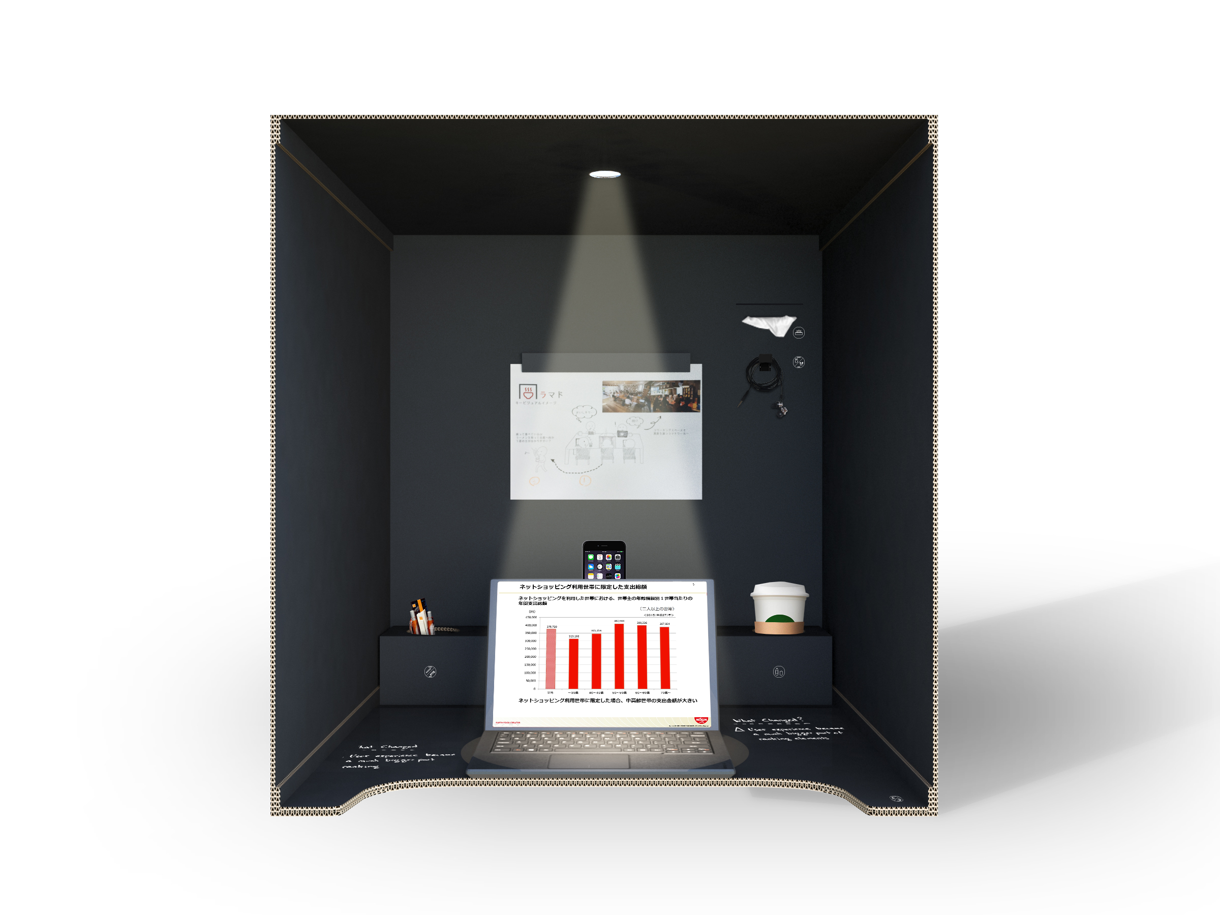 カップヌードルとはひとり黙々と食べるモノ、なんてサムライのような人にはいいかもしれない。ひとりカップヌードルタイム以外でも、プチ個室として使えるぞ。