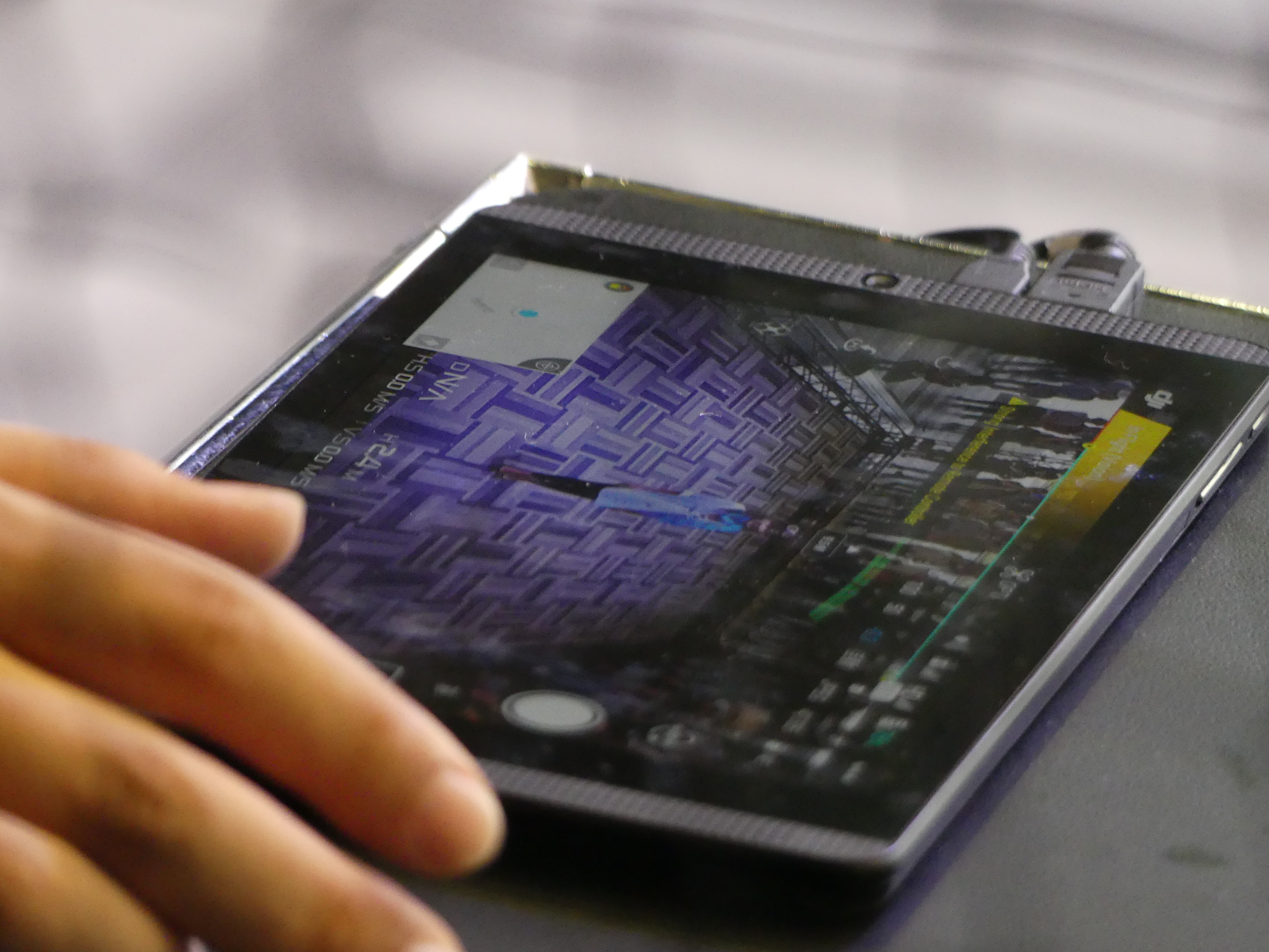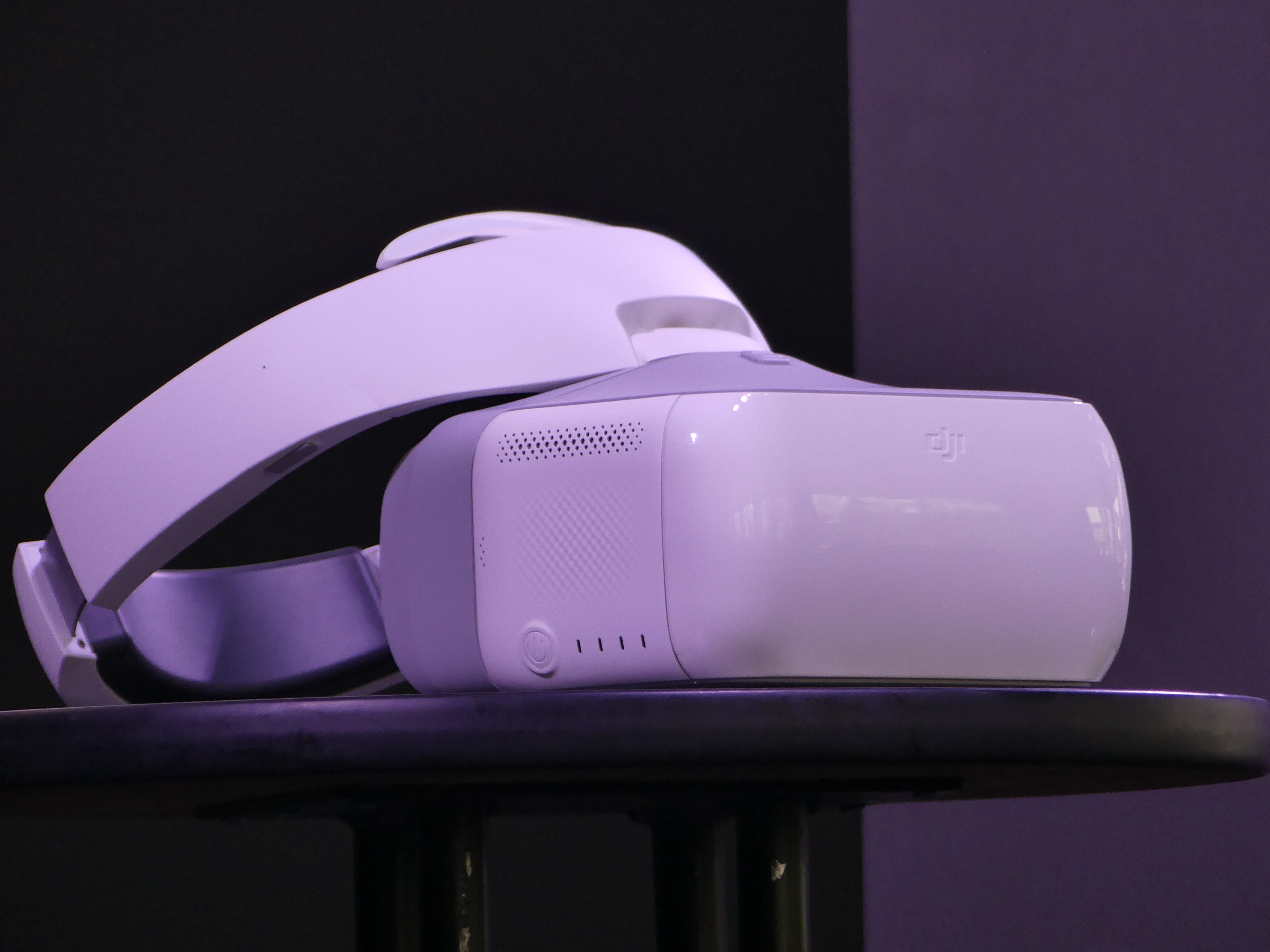 現在開発中のゴーグル。フルHDのディスプレイを備え、ユーザーの眼前に、機体から送られてくる上空からの映像を映し出す。まるでユーザーが機体に乗り込んで操縦しているような操縦方法は、FPV(First Person View)と呼ばれている。※実際には様々な規制があるため、ゴーグル発売後にも自由にFPVが楽しめるわけではない点には注意が必要。