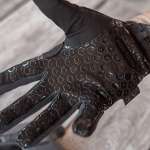 また、親指部分と人差し指の先端部には、スマホ等の操作が行えるタッチスクリーン対応の合成レザーが配置され、さらに親指エリアには汗をぬぐえるファブリック素材を採用。長時間に渡ってグローブを外すことなく、装着感に優れています。