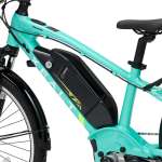 ダウンチューブに搭載したバッテリーは容量12.0Ahで最大走行距離は約54km。また、電動アシストに関する操作は電源オンオフのみで、バッテリー残量は電源ボタン上部に備えたLEDで確認できるなど小さな子どもでも簡単に扱える工夫が満載です。