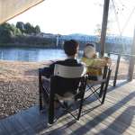 また、肘掛けと座面四隅のベルトの長さを調整することで座面の高さを無段階で調節できるので、ダイニングでディナーを楽しむ時は座面を高くしたハイスタイル、ベランダでのんびり過ごすリラックスタイムはロースタイルなど、シーンに応じて使い分けるられるのも便利です。