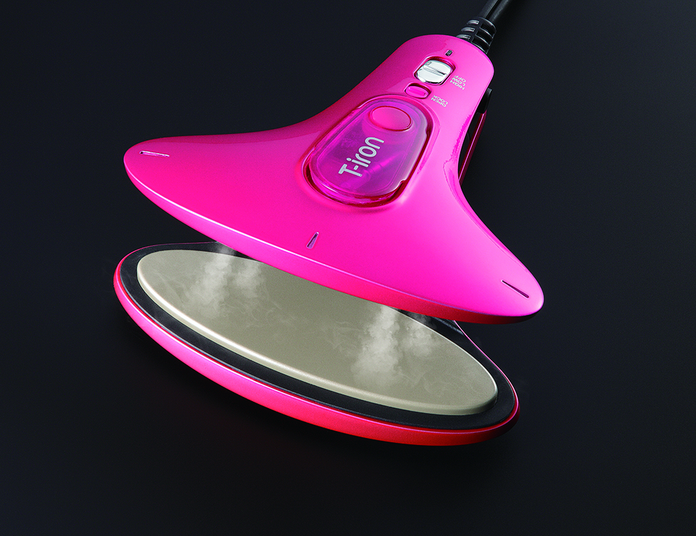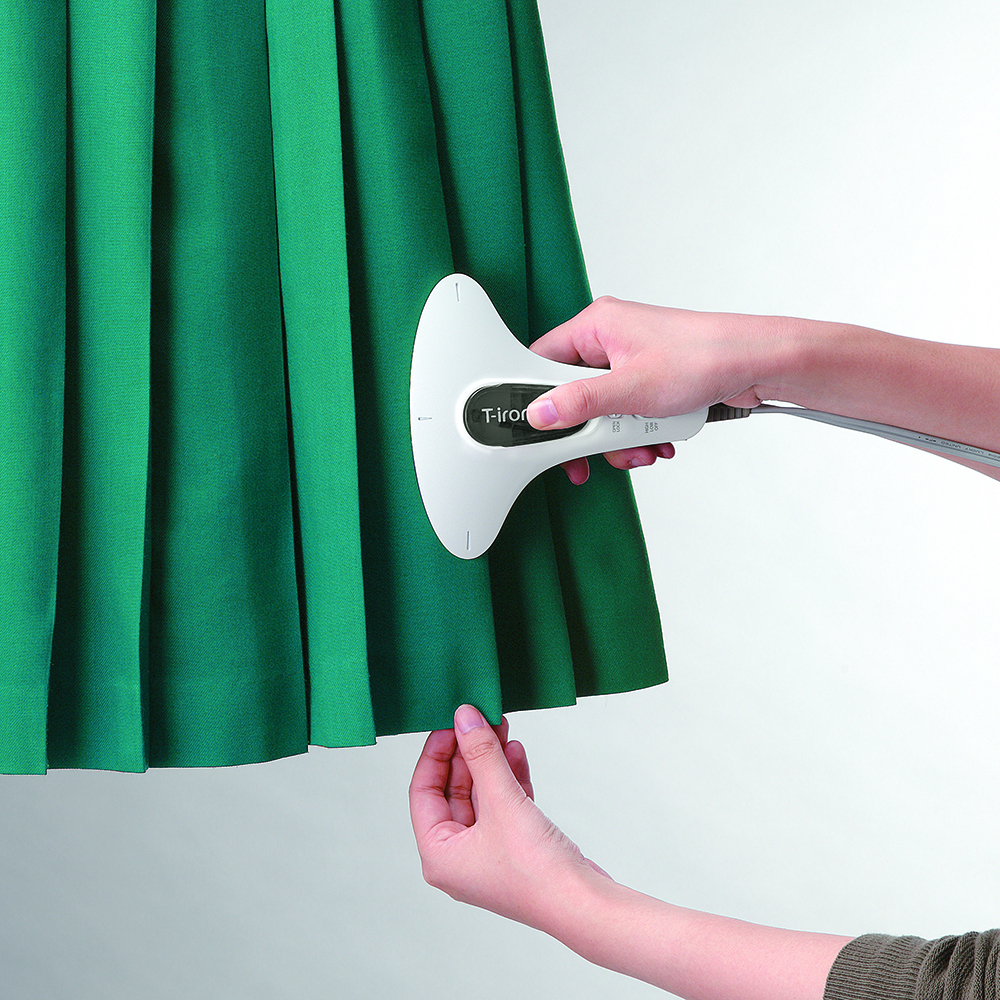 スゴイのはサイズだけではありません。髪のセットにとても便利なヘアアイロンの原理を応用し、スチーム機能を搭載したプレートで布地を挟んで折り目をつけてくれるんです。プレート部はセラミックコーティングを施しているので滑りもよく、スムーズにプレスできます。