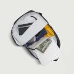 メイン収納部には14インチのノートPCまでに対応するスリーブとボトルポケットを装備。小物用のポケットを計3つと、AirTag用の隠しポケットも搭載しています。メイン収納部はジッパーで閉じられる仕様に。フロントには頻繁に出し入れするスマホや定期などを入れられるジップポケットも搭載しています。
