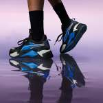 「RS-X PlayStation」はつま先部分にシェイプスロゴがアクセント的にあしらわれているほか、アウトソールには大きく「△〇×□」が。グラデーションカラーが取り入れられているのも特徴のひとつです。