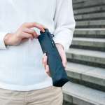 収納時は長さ約25cm×直径約4.5cm。巻いた傘生地を留めるバンドが幅4.5cmと太いため、スムーズに畳めるのも嬉しいポイントです。傘生地のカラーはブラックとネイビーの2色をラインナップ。