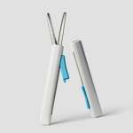 「スライド式ハサミ」(870円)は、持ち運びに適したスリムでシンプルなフォルムが魅力。スライダー内部の機構バーツにはオレンジのアクセントカラーを施し、さりげなく遊び心を取り入れています。
