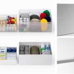 扉がないオープンシェルフの収納に便利なインナー(深型・浅型・トレー)とボックス(深型・浅型・トレー)を自由に組み合わせて使う「タイディアップボックス」。6型3色(ホワイト、グレー、クリア)展開のボックスなら、自分に最適な収納スタイルが見つかりそうです。