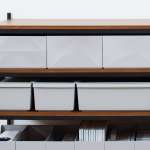 ボックスは側面が垂直なので、並べたり壁際で使ったりするときも隙間なく使えます。さらに浅型を2個積み重ねると深型と高さが揃う、底面の全周には高さ3mmのリブがついていてボックス同士、インナー同士を積み重ねて使用することができるスタッキングできるなど、意識せずともキレイに収められるようになっています。