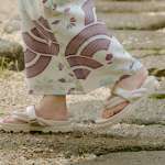 雪駄や下駄などに使われている和風の鼻緒を採り入れ、スポーツサンダルのストラップと組み合わせた独自の設計が特徴。