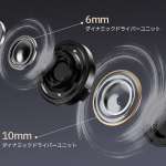 イヤホン本体には、10mmの低音用ドライバーと6mmの高音用ドライバーを同軸上に配置するデュアルダイナミック型ドライバーを採用。